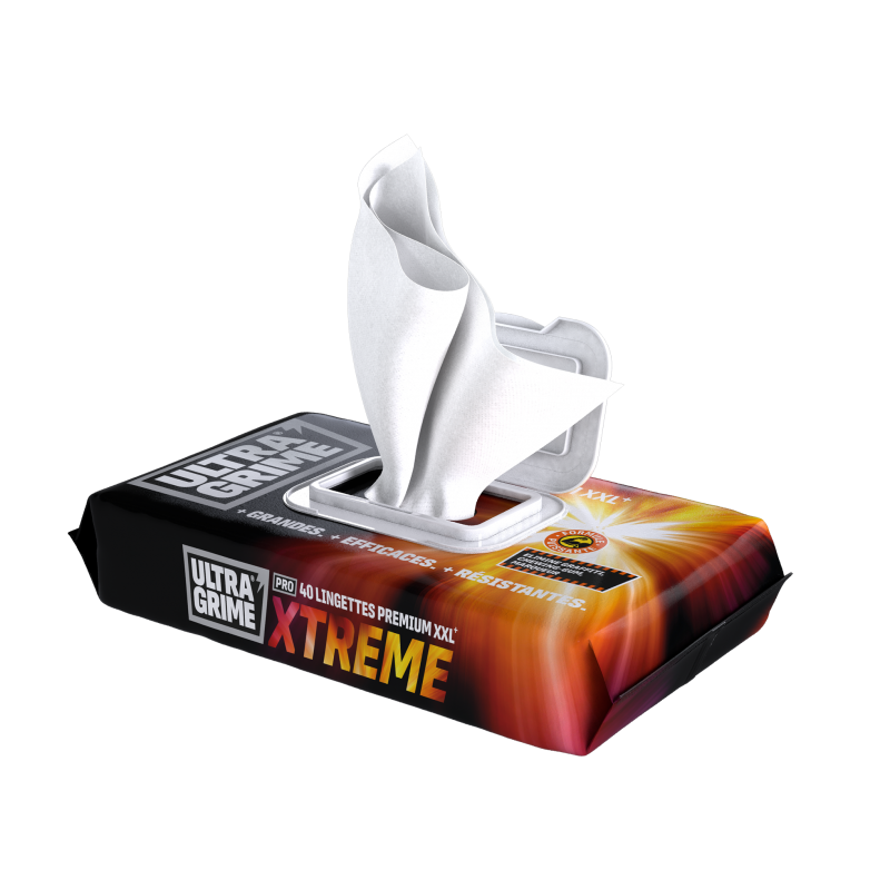 Des lingettes professionnelles XXL, puissantes et prêtes à l’emploi, conçues pour éliminer facilement les saletés tenaces telles que les graffitis, les traces d’encre, les colles, les chewing-gums, les mousses PU, etc.
